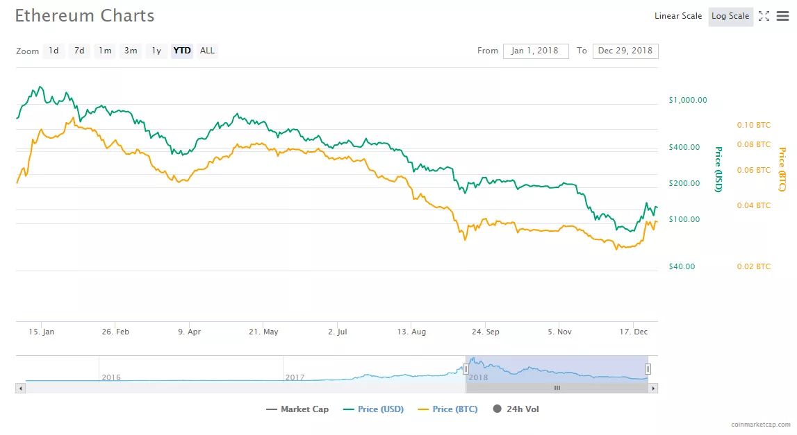 13 августа средневзвешенный курс ETH обновил 9-месячный минимум, опустившись ниже психологической отметки в $300, а спустя несколько дней еще один «удар ниже пояса» нанес CEO криптовалютной биржи BitMEX Артур Хэйес – он не только назвал Ethereum «шиткоином», но и предсказал падение цены монеты ниже $100. 7 декабря его прогноз сбылся.