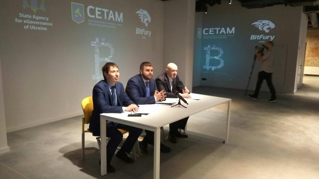 Signing the paper were SETAM CEO Viktor Vishnev, deputy head of Ukraine’s State Agency for E-Government Alexei Vyskub, and BitFury’s CCO George Givishvili.