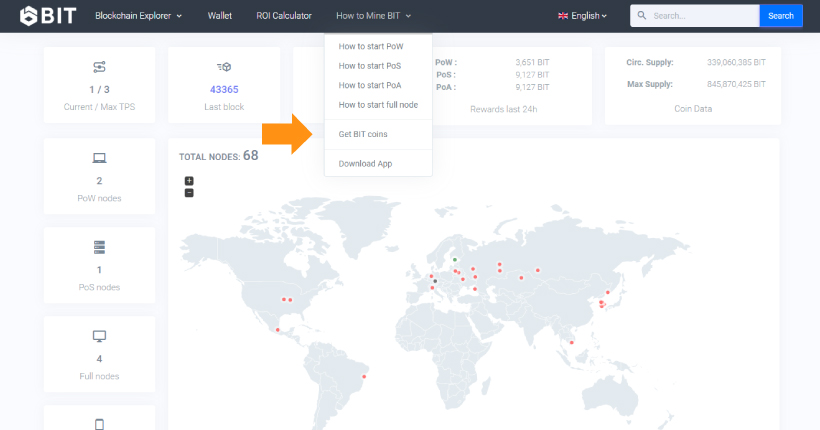 Step 2. Request BIT coins to your wallet by clicking “Get BIT coins,” enter the public address of your wallet and click “Confirm.”