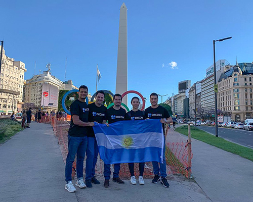 OKCoin team arrived in Argentina! Look for @JhannyRL, @pabsmagro, Oscar, @ElaineSong7 and @jimnguyenjn at the #C20 conference pic.twitter.com/cxh2eCxaJw