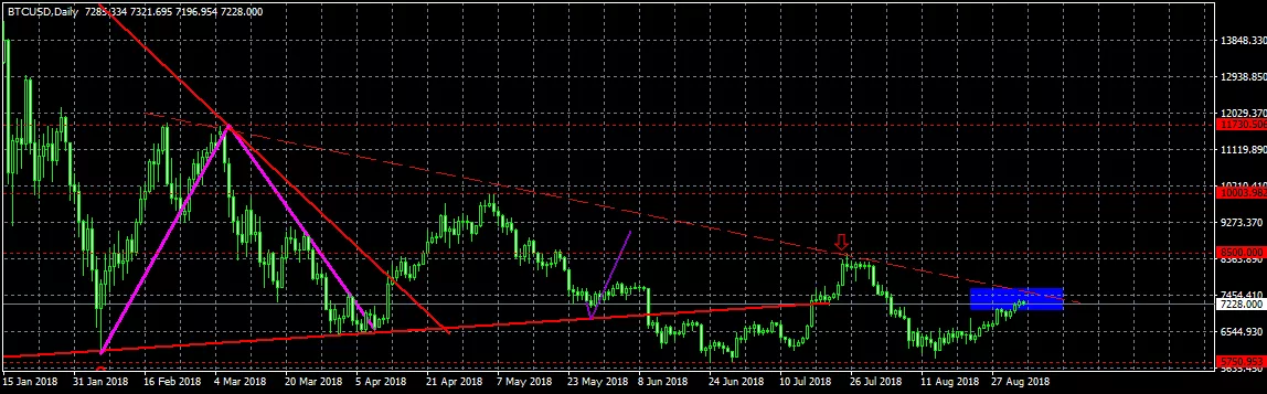 Биткоин достиг целей, которые были озвучены еще тремя неделями ранее. Плавно, монотонно и без особых рывков цена первой криптовалюты выросла с $6000 до $7200.