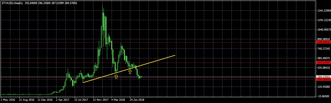 Эфир немного оклемался после паники, устроенной крупными ICO-компаниями, но все равно чувствует себя неважно — и это на фоне растущего биткоина. Прошедшая неделя закончилась первой бычьей свечой за несколько недель. Но она настолько слаба и невнятна, что о развороте пока говорить рано. Скорее всего продолжится флэт, и без важной фундаментальной новости или без общего мощного роста крипто рынка эфир не будет сильно расти.