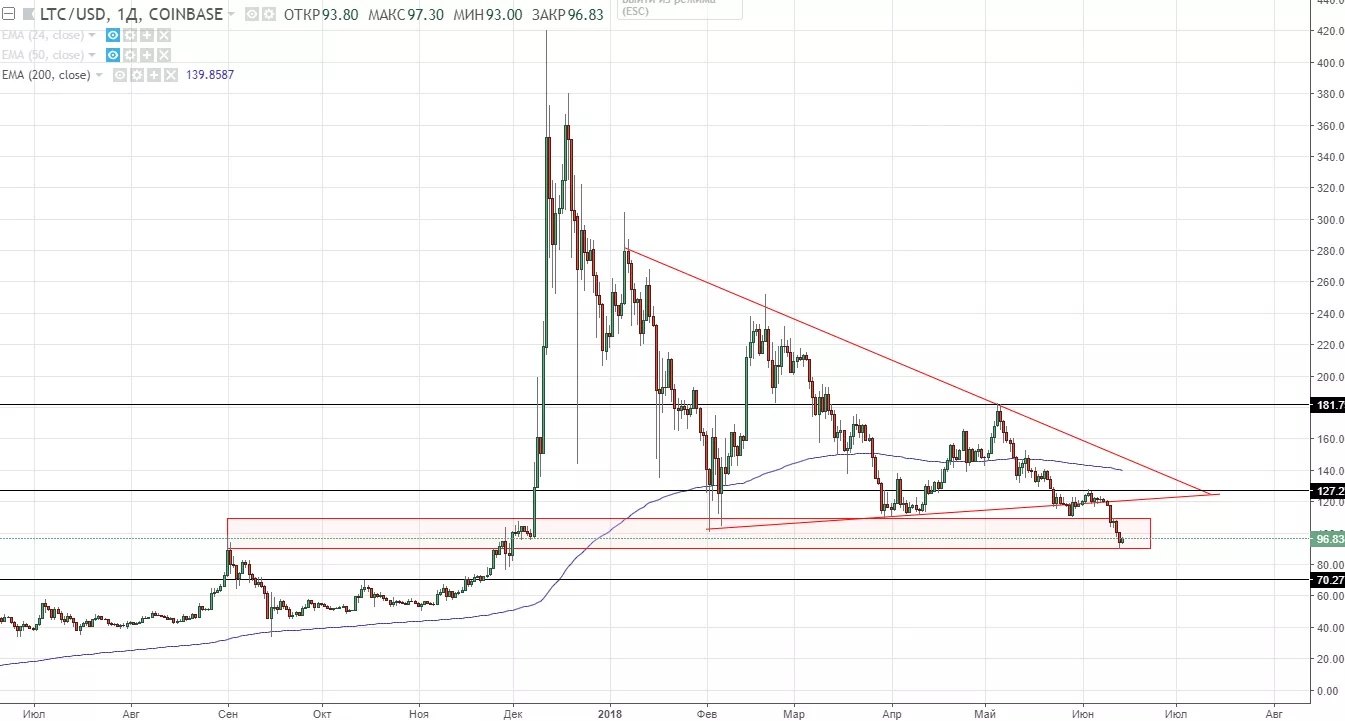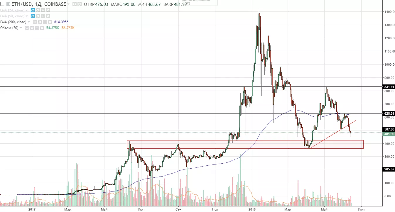 За последнюю неделю капитализация рынка криптовалют снизилась примерно на 20% — с 350 до 279 млрд долларов США. В свою очередь, цена биткоина 9 июня начала сильное нисходящее движение, достигнув впоследствии отметок ниже $6300.