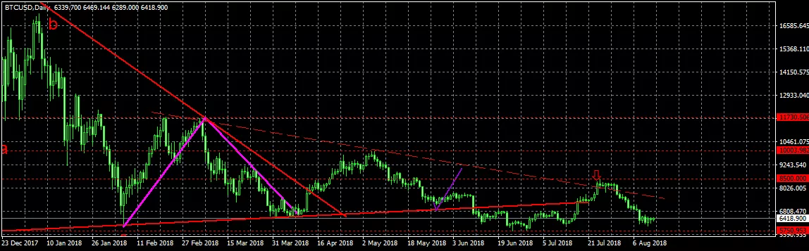 В прошлом обзоре речь шла о ключевом уровне в районе отметки $6000, который полностью оправдал себя. Действительно, график биткоина нащупал дно и начался рост, который составил 50% ($6000–9000).