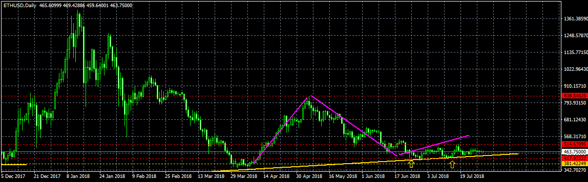 Уже вторую неделю подряд на рынке доминируют покупатели. 23-24 июля цене главной монеты удалось подняться еще на $1000. Впоследствии биткоин закрепился выше психологически и технически важной отметки в $8000.