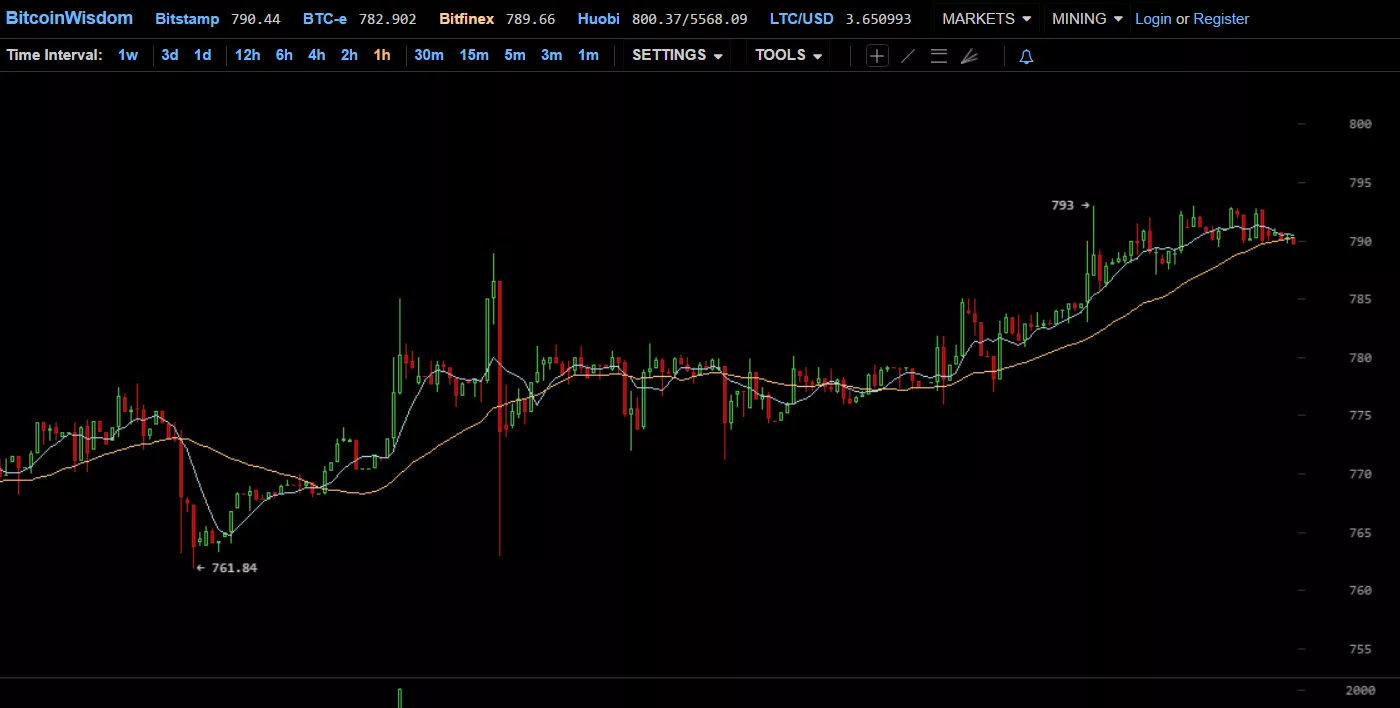 Просев в какой-то момент в начале недели почти до $760, криптовалюта в дальнейшем показывала устойчивый рост и сегодня торгуется на большинстве площадок в районе $790.