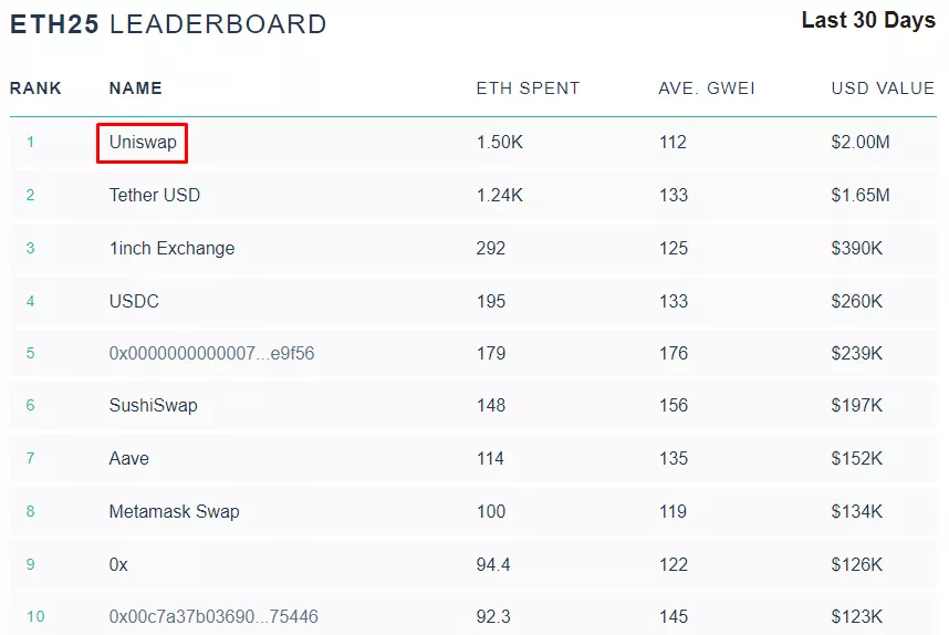 Крупнейшие проекты-потребители газа в сети Ethereum. Данные: ETH Gas Station по состоянию на 30.04.2021.