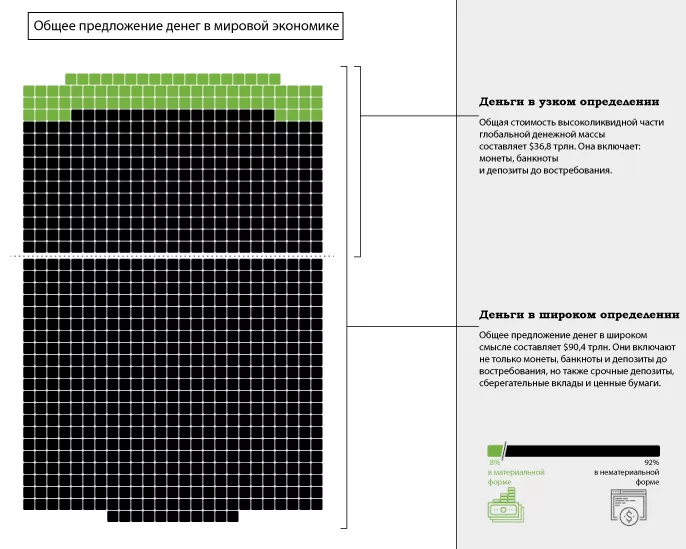 Совокупный объем “денег в широком смысле” составляет $90,4 трлн, что значительно превышает мировой ВВП, а значит и потребности глобальной экономики.