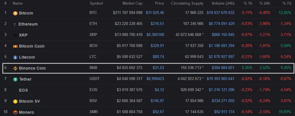 Стоит также отметить, что в последнее время Binance Coin (BNB) уверенно растет, зачастую не коррелируя со множеством других криптоактивов. Так, в течение последних 7 дней актив вырос более чем на 9%, превысив отметку в $31: