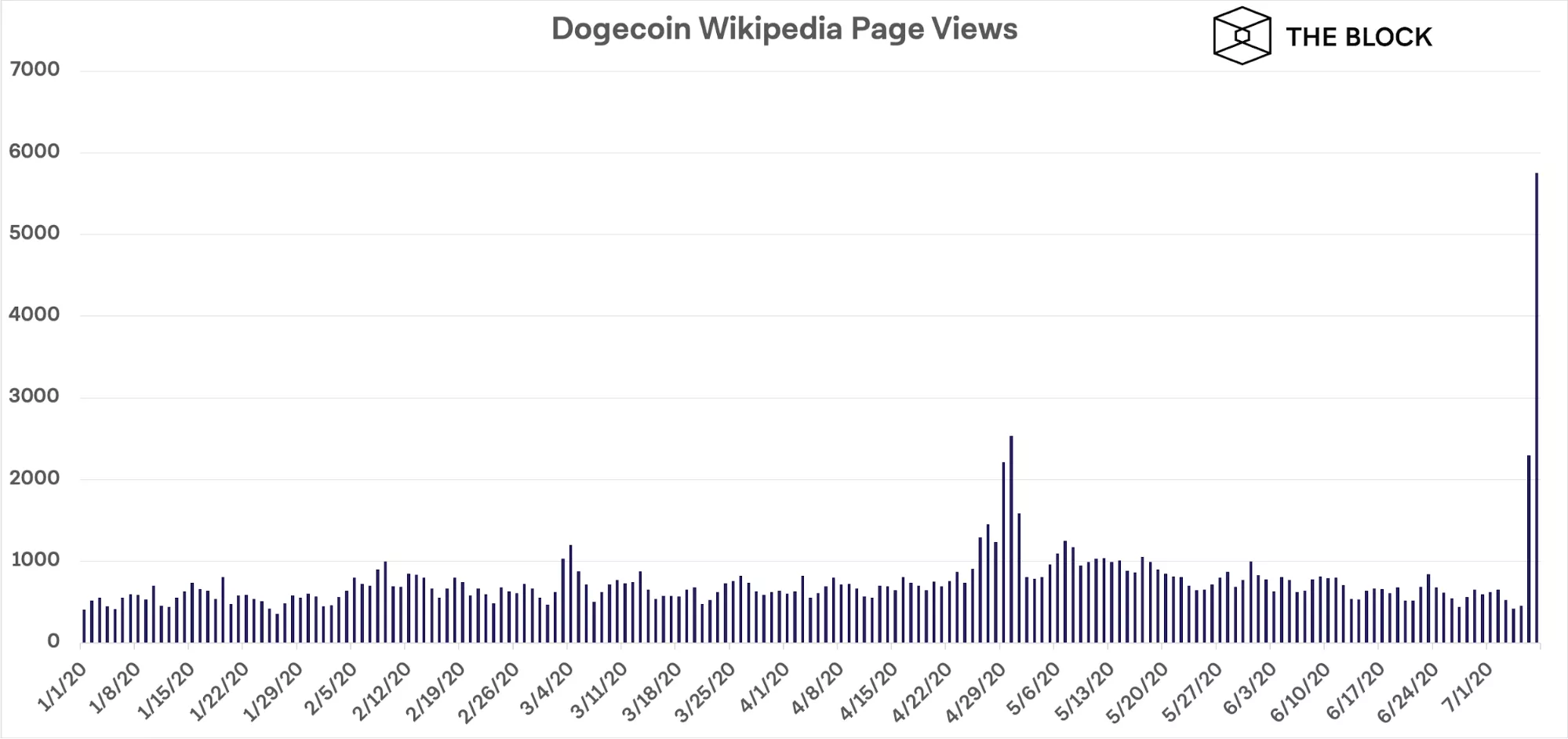 Популярность посвященной Dogecoin странице в Википедии выросла в 8 раз, с 730 ежедневных просмотров до 5700.