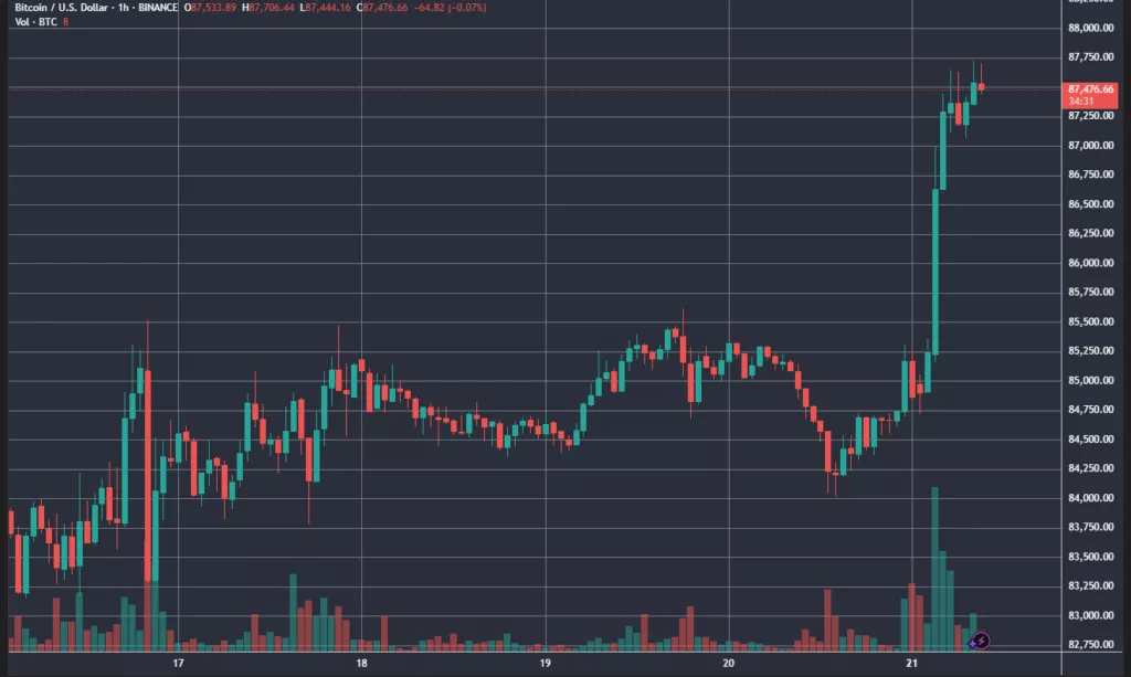Биткоин вернулся к уровням выше $87 000