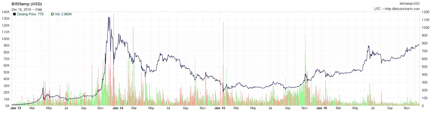 Когда биткоин только появился, его часто называли The Next Big Thing на финансовых рынках и очевидным продолжением монетарной эволюции в становящемся все более цифровом мире. Однако, достигнув рекордных показателей в 2013 году, криптовалюта на фоне краха биржи Mt Gox и запретительных мер в отдельных странах впоследствии начала резко терять в стоимости. Так, на протяжении большей части лета 2015 года курс биткоина находился в районе $200.