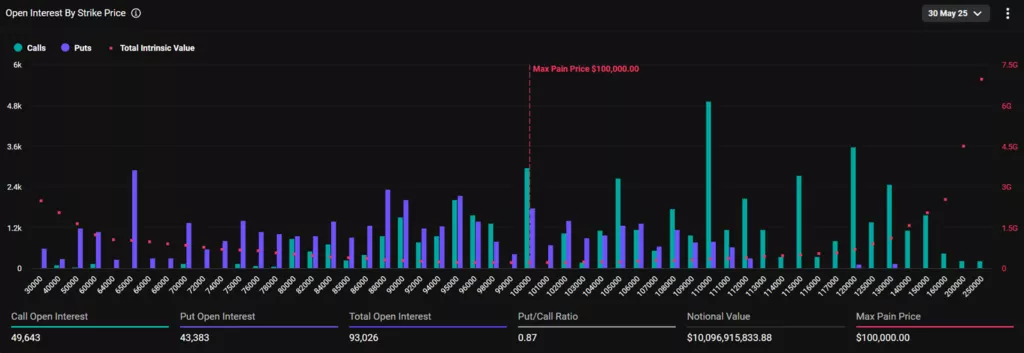 30 мая на платформе Deribit состоится экспирация опционов на цифровое золото номинальной стоимостью $10,1 млрд. Исходя из текущих метрик первая криптовалюта может столкнуться с резким изменением котировок.