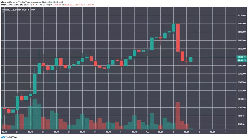 В воскресенье утром котировки криптовалюты превысили $12 000 (Bitstamp), но в течение нескольких минут обвалились до уровня $10 500. На момент написания биткоин торгуется в диапазоне $11 100-$11 200.