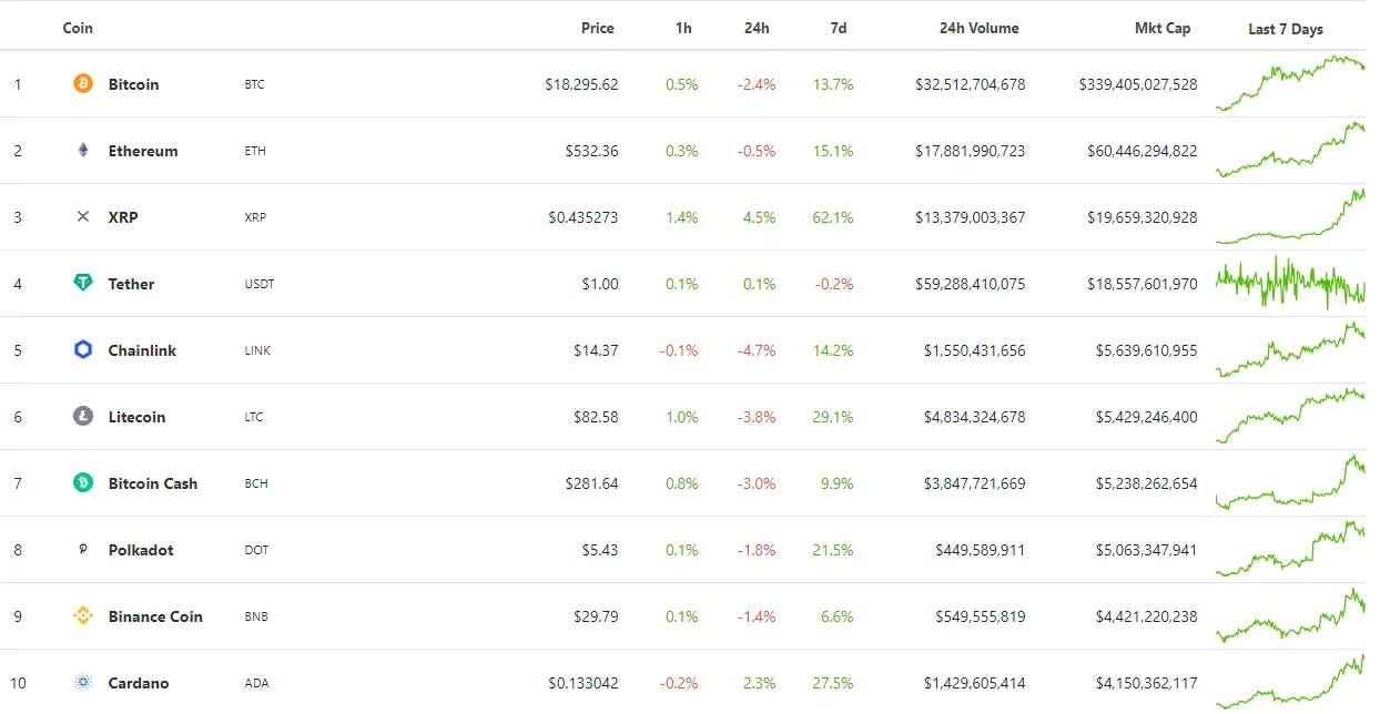 На момент написания котировки вернулись к отметкам выше $18 000, биткоин торгуется около $18 300.