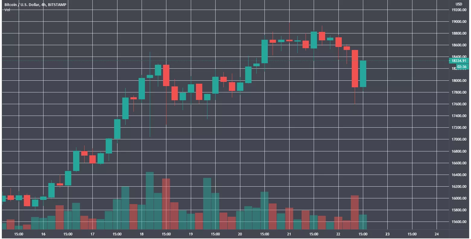 Новую попытку приблизиться к $19 000 первая криптовалюта предприняла утром 22 ноября. После цена перешла к снижению, дойдя до уровня $17 600.