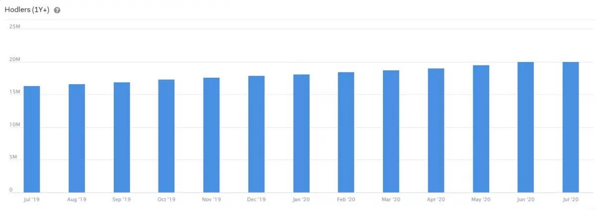 Кроме того, рекордного значения достигло число долгосрочных держателей биткоина, не проводивших операции с криптовалютой по меньшей мере 12 месяцев.