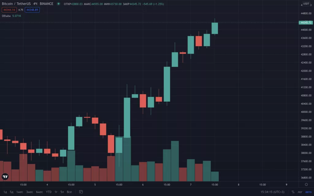 Курс биткоина вплотную приблизился к отметке $44 000. На момент написания цифровое золото торгуется на уровне $43 500. Капитализация актива первой криптовалюты — $816 млрд, по данным CoinGecko.