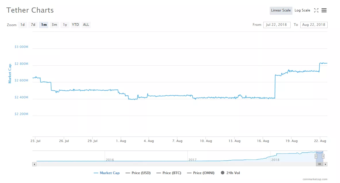 Одновременно с этим существенно выросла капитализация USDT, и после последнего транша она превысила 2,8 млрд, подняв актив на 8-е место в рейтинге CoinMarketCap.