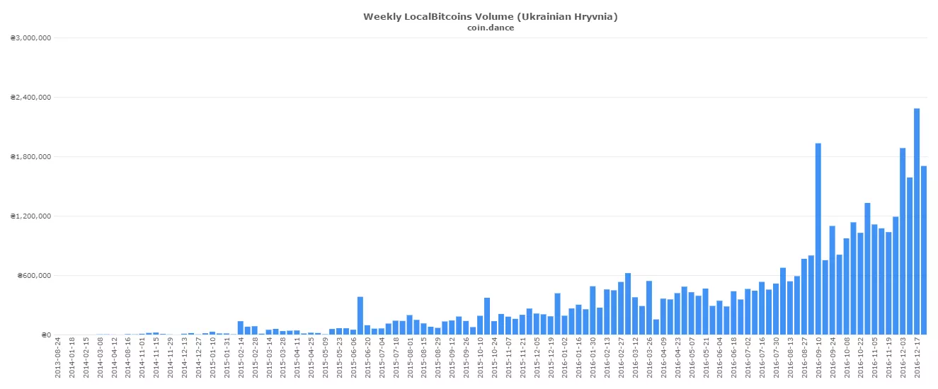 Напомним, неделю назад новый рекорд был поставлен по объемам сделок на LocalBitcoins в Украине, однако за последние семь дней активность на этом участке снизалась: 1,702,554 гривны.