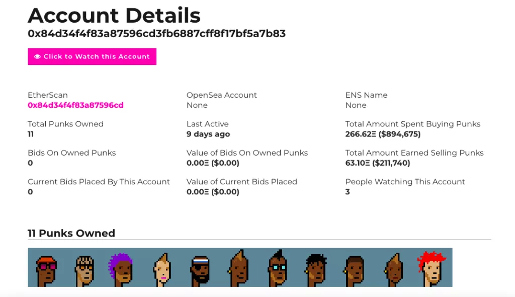 Согласно NFT-маркетплейсу OpenSea, указанный в твите адрес владеет 41 невзаимозаменяемым токеном. Среди них — 11 CryptoPunk. Это подтверждают данные Larva Labs.