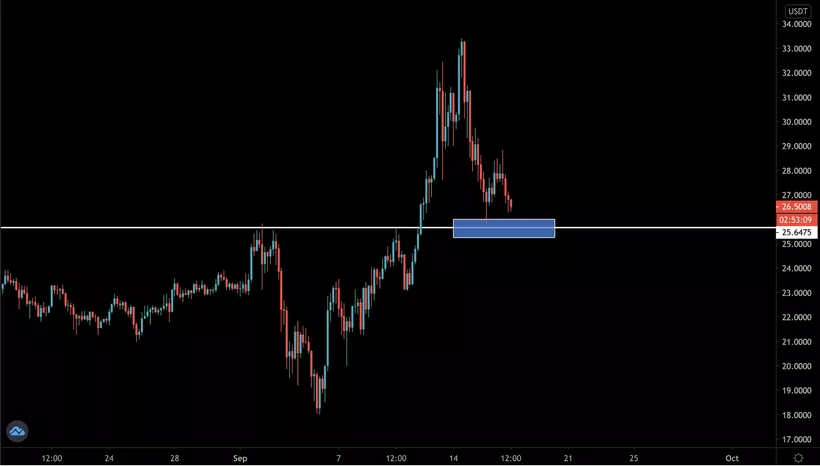 Сейчас BNB претерпевает вполне ожидаемую коррекцию после молниеносного роста. Важным ценовым рубежом является диапазон поддержки $25-$26. На фоне роста BTC вполне вероятен и рост BNB от уровня $26.
