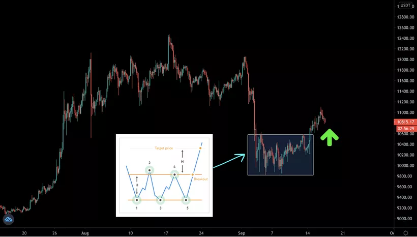 Обратите внимание на то, что цена биткоина вышла за верхнюю границу паттерна «Торговый канал». Это является бычьим сигналом в дополнение к тому, что уровень $10 000 устоял, несмотря на стремительное падение цены.