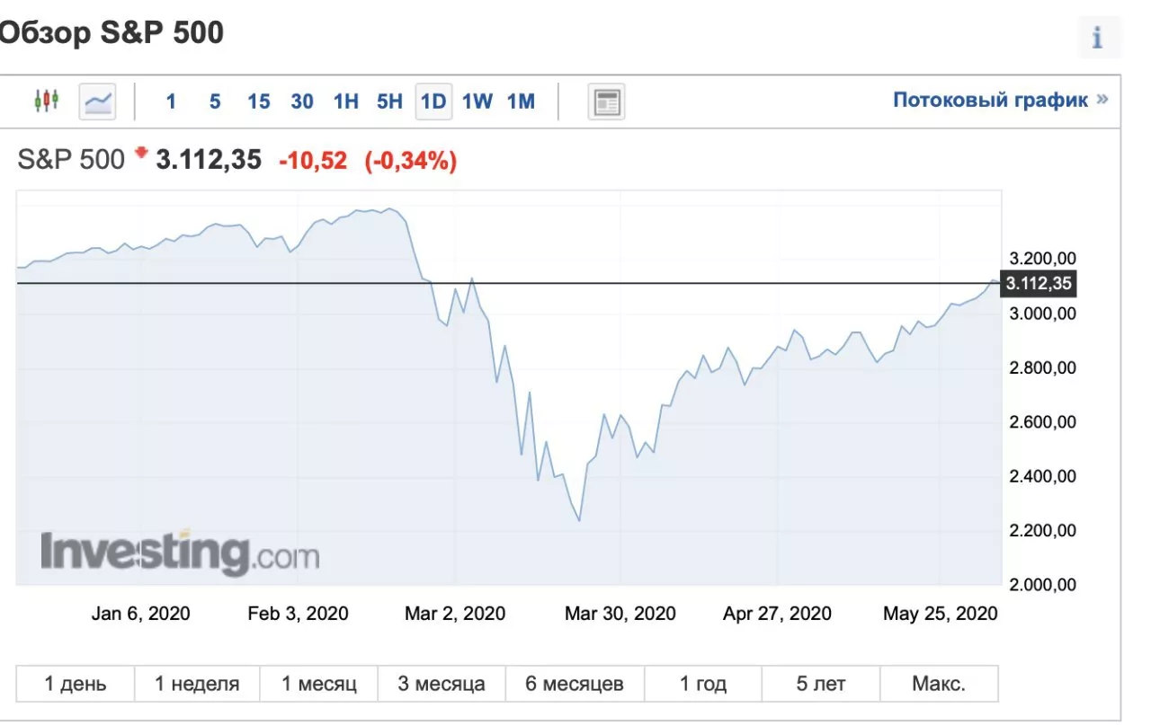 На традиционных рынках картина прежняя: негатив в экономических показателях и международной торговле, а также бурный рост фондового рынка. В частности, S&P 500 достиг трехмесячных максимумов и вплотную подошел к 3130 — уровню 4 марта, когда начался обвал на рынках акций.