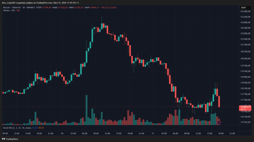 На момент написания флагман рынка торгуется в районе $117 000.