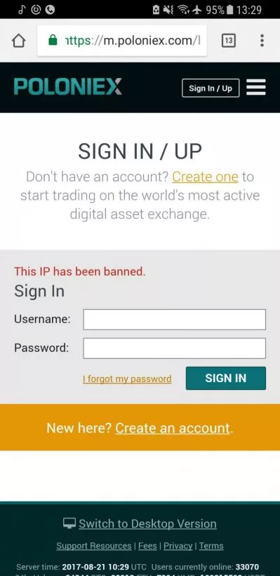 Житель Украины Дмитрий Казамацкий сообщил ForkLog, что, находясь в России, не смог зайти на свой аккаунт на бирже. Система выдала предупреждение о том, что его IP-адрес заблокирован.